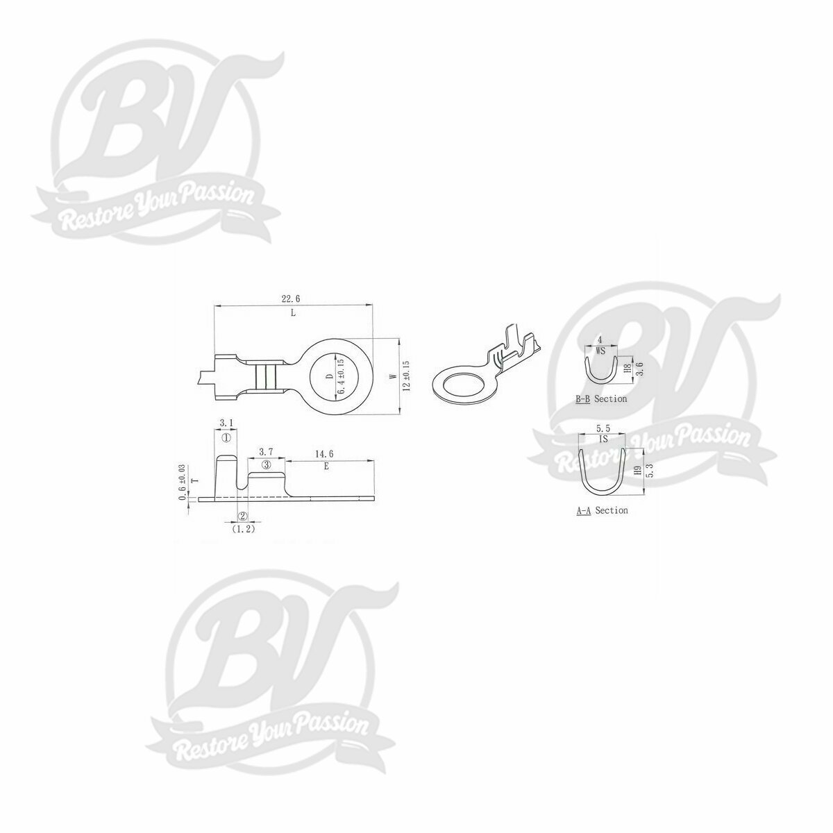 Cosse -oeillet 6,5mm Ø=1,0-1,5mm²- 10 unités