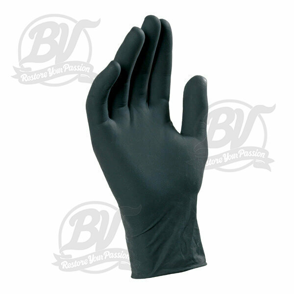 Gants en nitrile : - À usage unique sans poudre, ambidextres, de couleur noire. - Finition micro-rugueuse externe. - Excellente sensibilité. - Résistance chimique aux hydrocarbures et solvants. - Longueur : 240mm. - Epaisseur 0,09mm. Selon : ASTM-D6319, EN 455 1,2