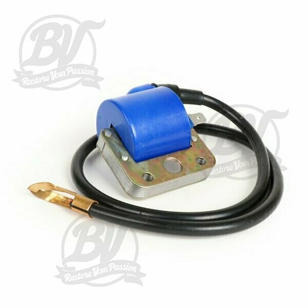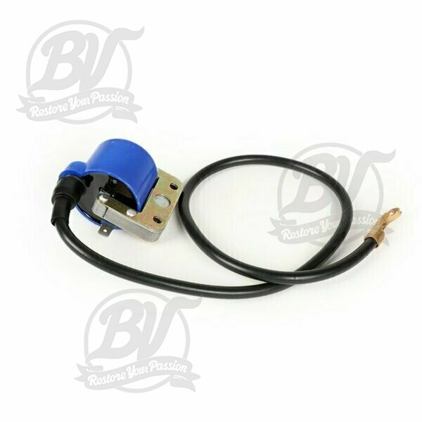 Bobine d'allumage bleue, avec câble d’allumage- Vespa V50, PV125, GT125 (VNL2T), GTR125 (VNL2T), TS125 (VNL3T), Sprint150 (VLB1T), GL150 (VLA1T), LML Star, Stella 125-150