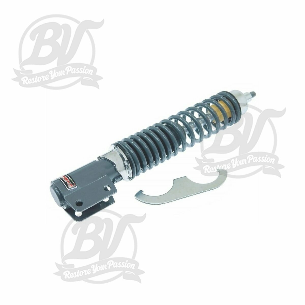 Amortisseur avant Vespa PX, corps gris, ressort gris, réglage chromé
