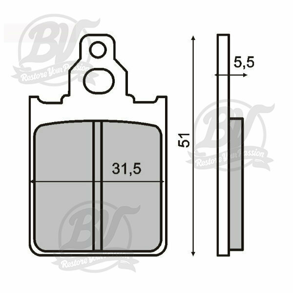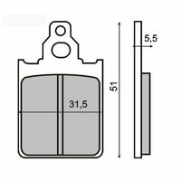 Plaquettes de frein 31,5x51mm pour étrier Grimeca Vespa PX Disc (1998-2010), LML Star, Stella, Grimeca Classic/NT, SKR125, SKR150 (1993-1997) (av.), Quartz 50cc (1992) (av.),, ITALJET Formula AC 50cc (1995) (av.), Quartz 50cc (1992) (av.), Skipper 125cc
