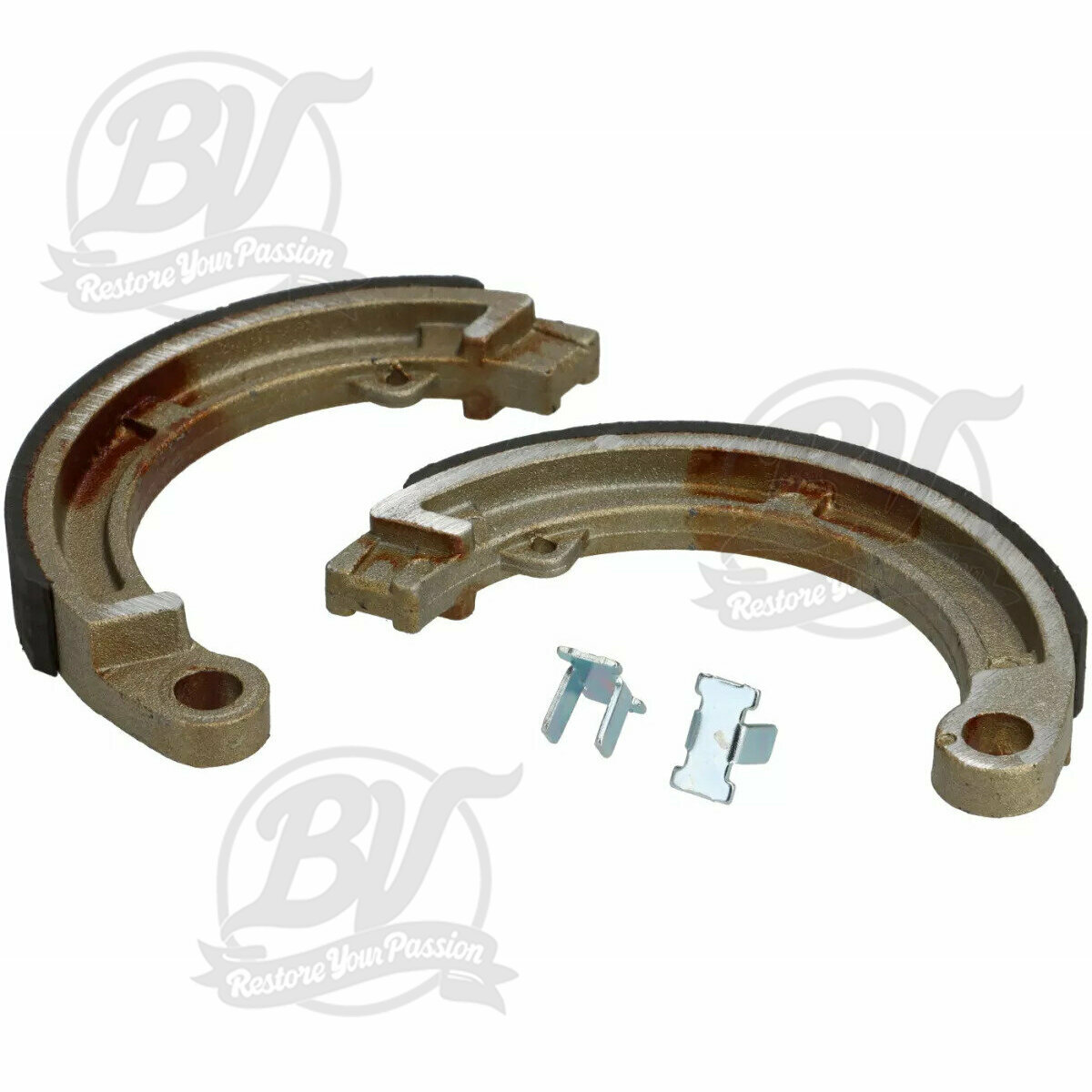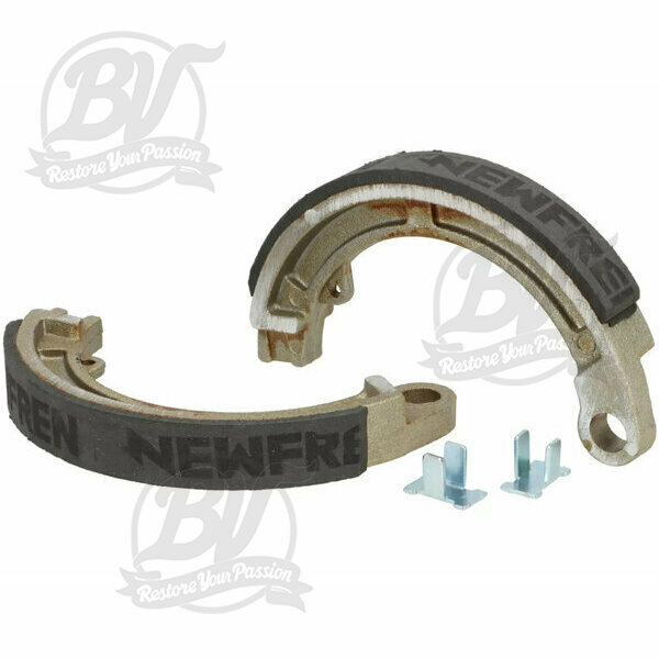 Mâchoires de frein Ø=125x17mm- 8 + 9 + 10 avant, 1 logement, Vespa Smallframe V50, V90, SS50, SS90, PV125, ET3, Wideframe V1T à V15T, V30T-V33T, VM, VN, VL, VB, VNA, VNB, VBA, VBB, Super
