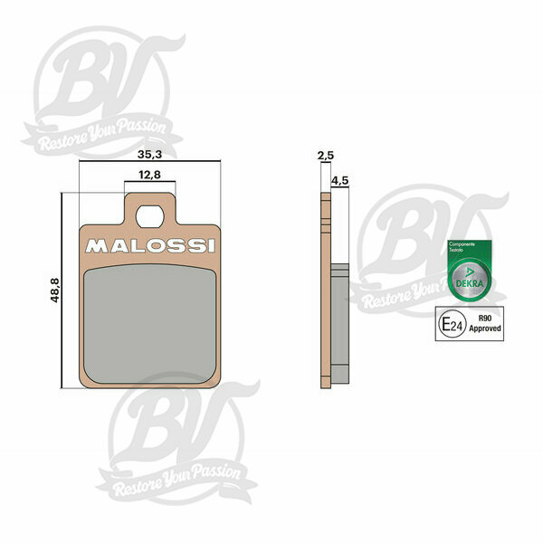 Plaquettes de frein -MALOSSI MHR 35,6x49mm- Hengtong - Vespa PX (2011-2017) - Vespa PX125/150 (ZAPM741, ZAPM742, 2011-), S50-150 (ZAPC389, ZAPC381, ZAPC386, ZAPM444, ZAPM682, ZAPM44302), ET4 50 (ZAPC260), LX50-125 (ZAPC384, ZAPC381, ZAPC387, ZAPC383)