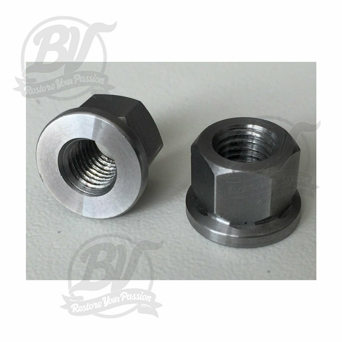 Ecrou épaulé MD Racing pour goujons de cylindres M7 (monté sur cylindre Vespa PX80, PX125, PX150, Sprint GT125 (VNL2T), GTR125 (VNL2T), TS125 (VNL3T), Super, VNA, VNB, VBA, VBB, V90, SS90, PV125, ET3, PK80, PK125