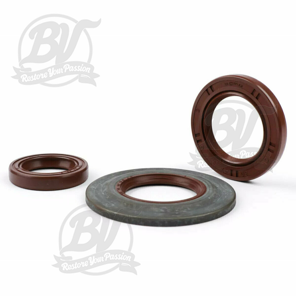 Kit joints spi pour moteur -BGM PRO, FKM/Viton® (résistant à E10) métal, marron (extra flat, 3.5mm)- Vespa Largeframe PX Lusso (1984-1993) - joint spy roue arrière 30x47x6mm (externe) - PX80, PX125, PX150, PX200, T5 125cc, Cosa